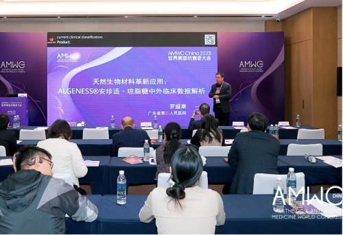 在中国生物医学美容学术交流会专场,广东省第二人民医院整形美容科主任罗盛康教授,围绕《天然生物材料的革新应用:Algeness®安珍适®・琼脂糖填充剂中外临床数据》进行深度解读。他从专业角度拆解了安珍适®VL琼脂糖的中外临床数据,重点论证了其高生物相容性的优势——因材料纯净、无杂质,能有效降低过敏及超敏反应发生率,为产品的临床安全应用提供了坚实的学术支撑,也让在场从业者对天然琼脂糖材料的价值有了更清晰的认知。