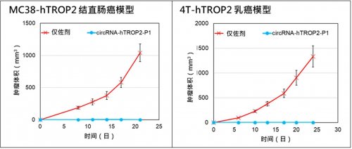 图1:TROP2 circular mRNA 疫苗在结直肠癌及乳腺癌预防性小鼠模型中展现卓越抗肿瘤功效